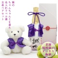 【古希祝い】紫のちゃんちゃんこを着た古希ベアと名入れラベル酒 すっきり梅酒セット 白ボトル