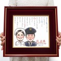 【退職祝い】似顔絵ポエム<朱色色紙額>あったかタッチ【似顔絵人数1人】