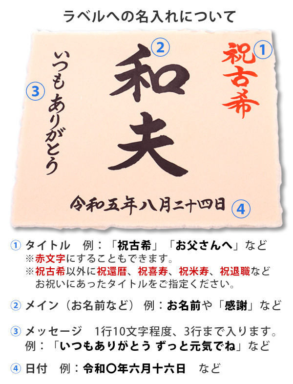 【喜寿祝い】名入れラベル酒 書家手書きラベル <純米吟醸 一升瓶 1800ml>喜寿年表付き